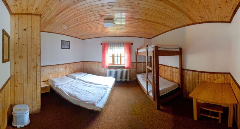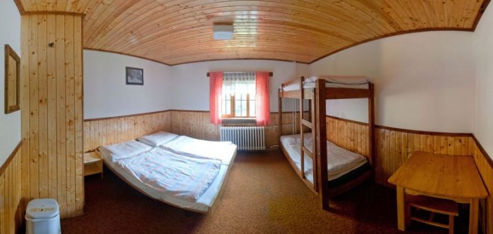 Další informaceUbytovací kapacita chaty je 36 lůžek. Je možné se ubytovat ve 2 kategoriích. Do první kategorie spadají čtyř a pěti lůžkové pokoje se společným sociálním zařízením. Do druhé kategorie spadají dva dvoulůžkové pokoje s vlastním sociálním zařízením, sprchou i TV. K dispozici je i přistýlka.