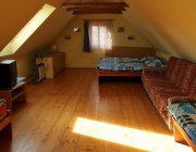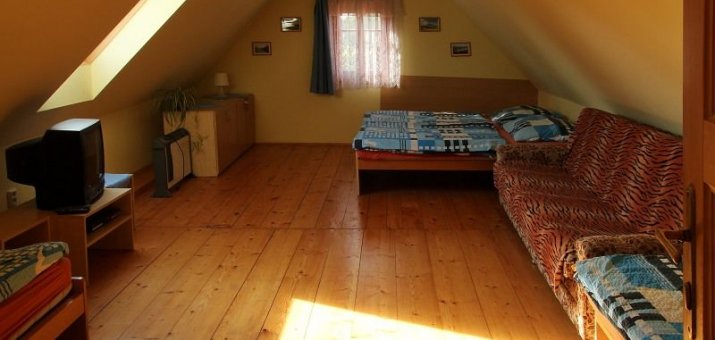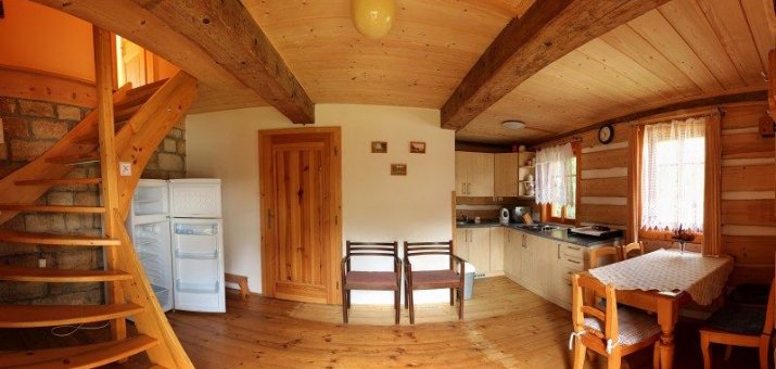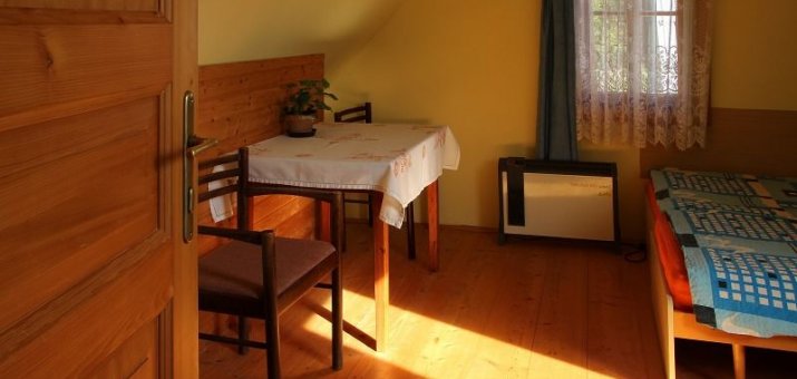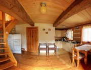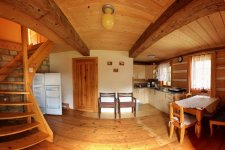 Jsou zde k dispozici 4 ložnice (2x dvoulůžkový pokoj, 2x čtyřlůžkový pokoj). Dále 3x sociální zařízení s toaletou a sprchovým koutem (2x bojler 120l). Stravovat se můžete v plně vybavené kuchyni (eletrická varná deska, 2x lednice s mrazáčkem, mikrovlnná trouba, přenosná trouba, rychlovarná konvice a nádobí). Vytápění je možné el. přímotopy ve 4 - lůžkové ložnici dřevem.