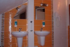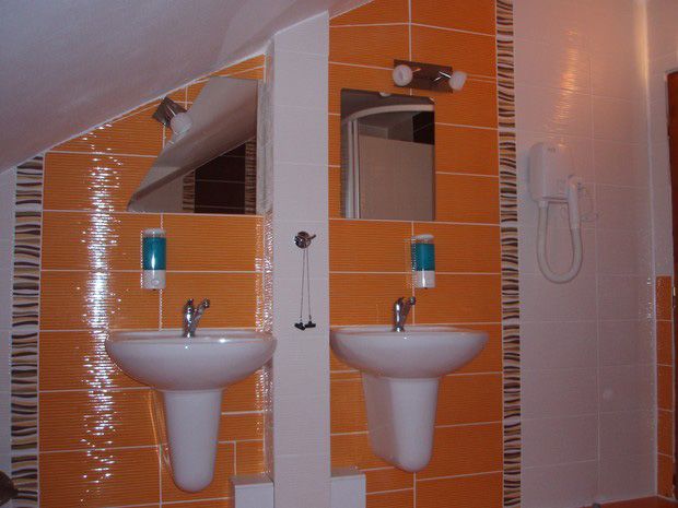 Některé pokoje mají vlastní sociální zařízení se sprchovým koutem, toaletou a umyvadlem. Další pokoje mají společně sociální zařízení na chodbě.