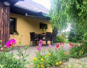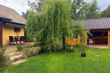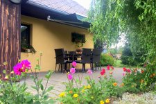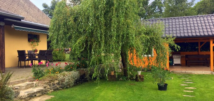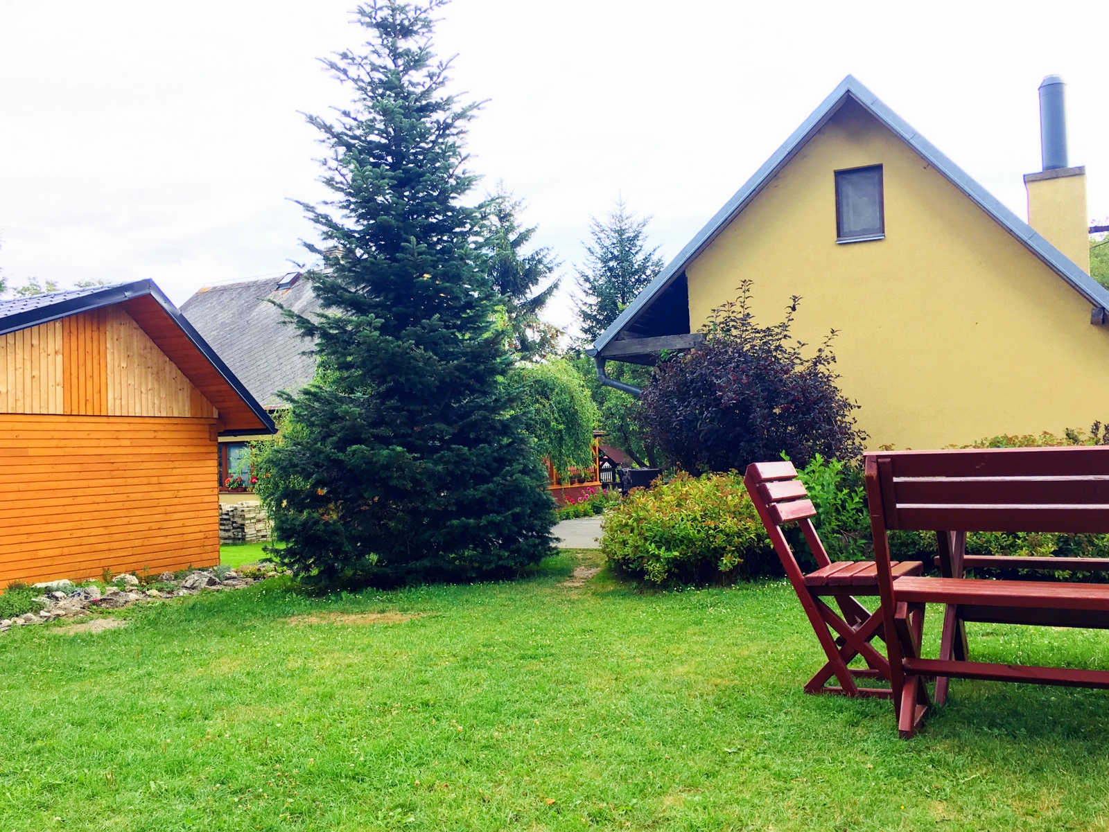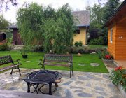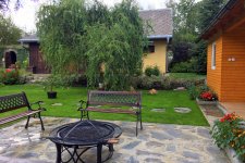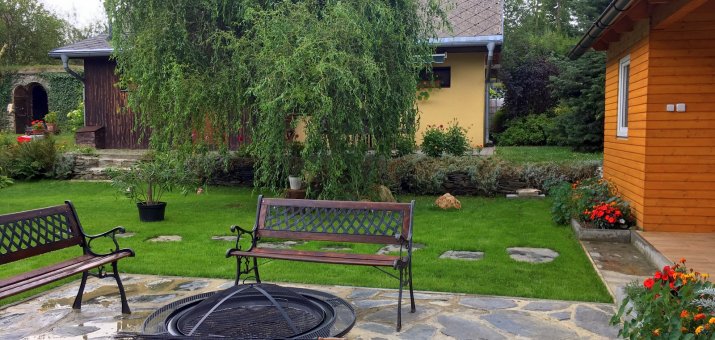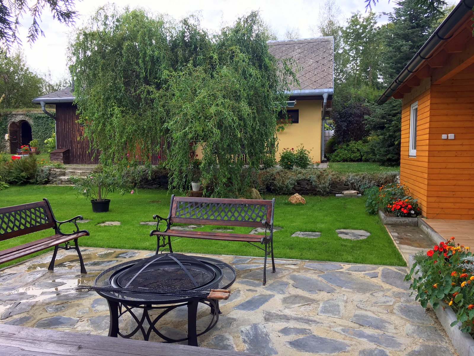 Hosté mohou využít také společenskou místnost s krbem, saunu, venkovní posezení s venkovním krbem, grill, ohniště.