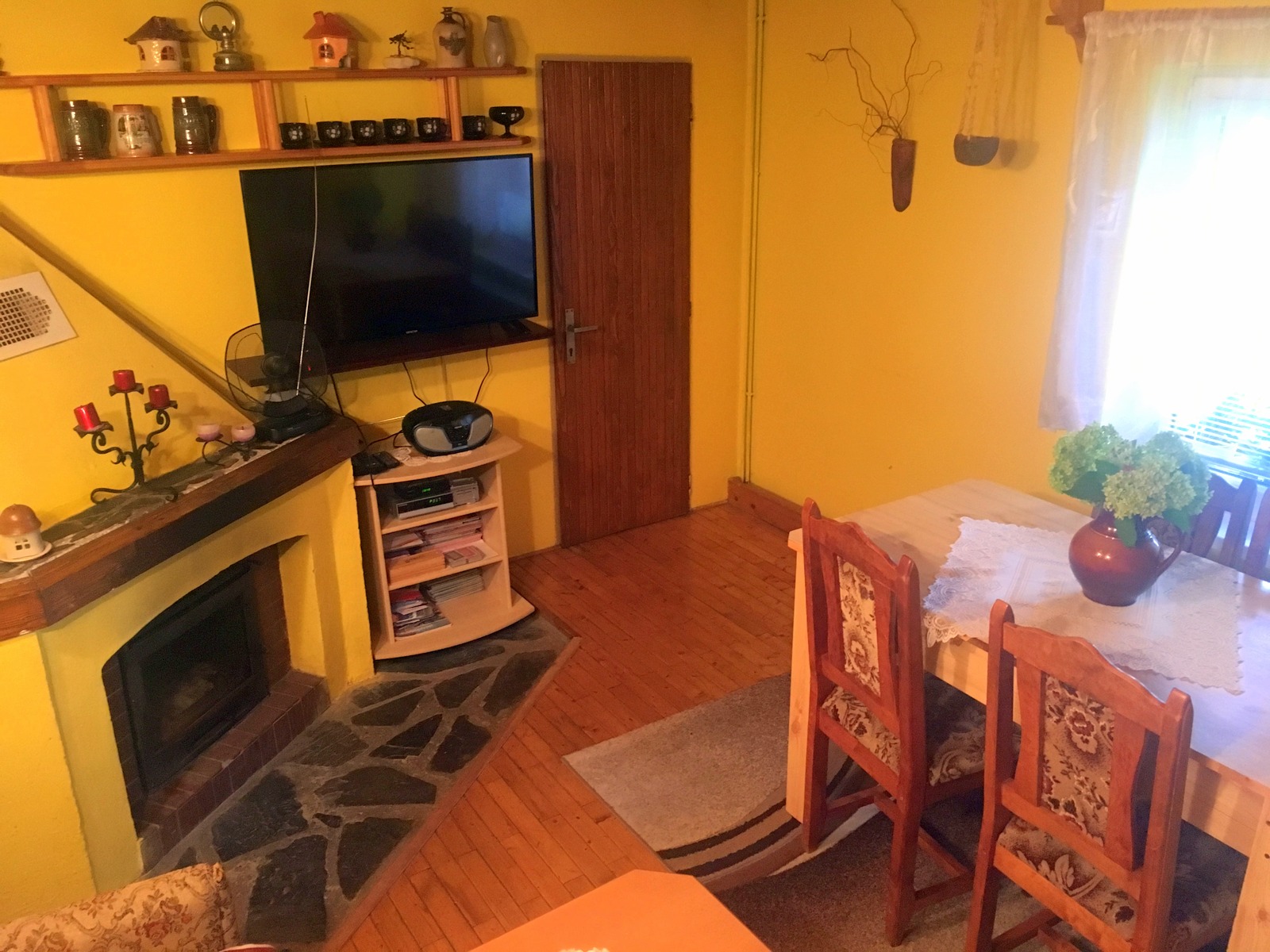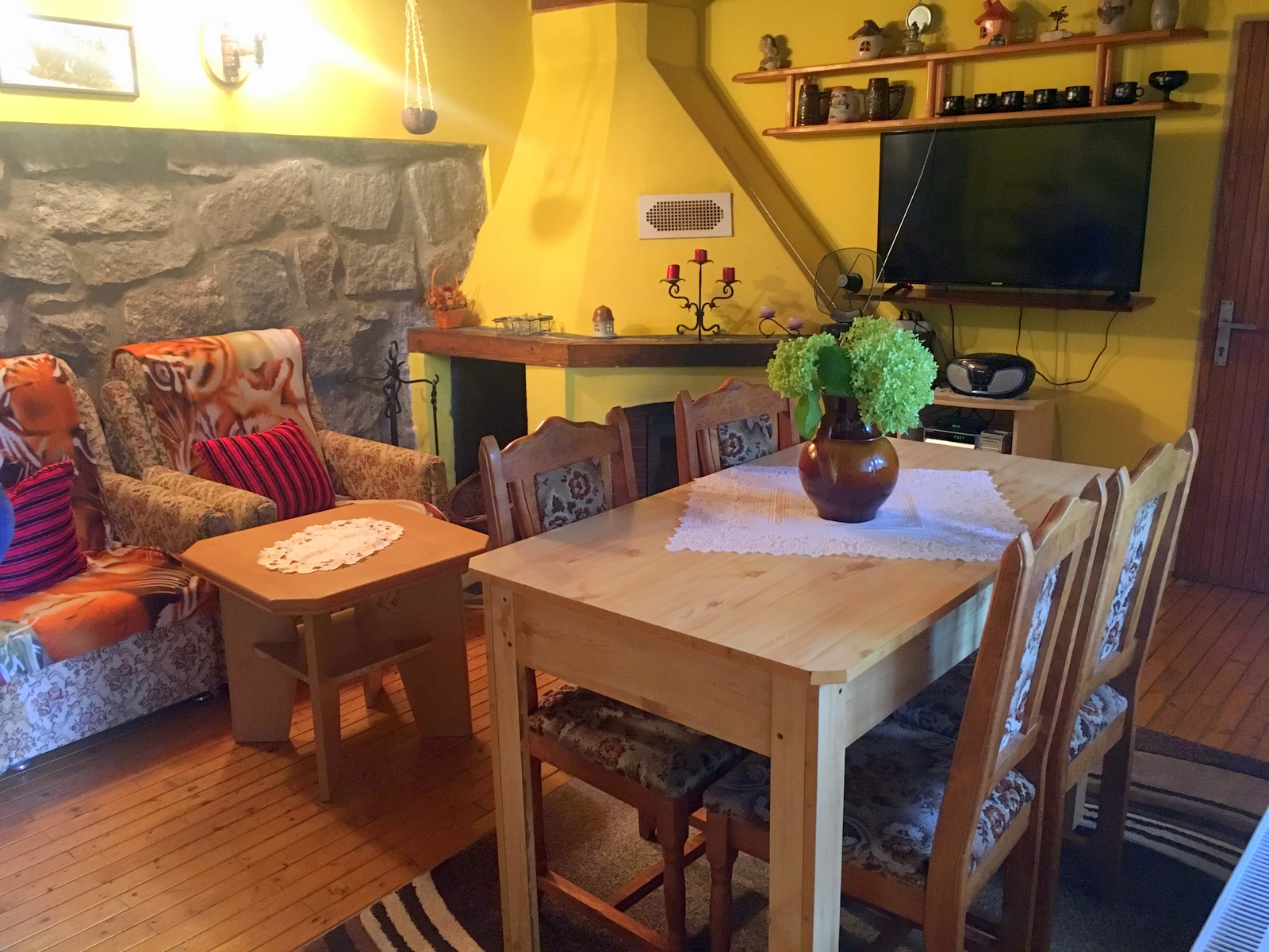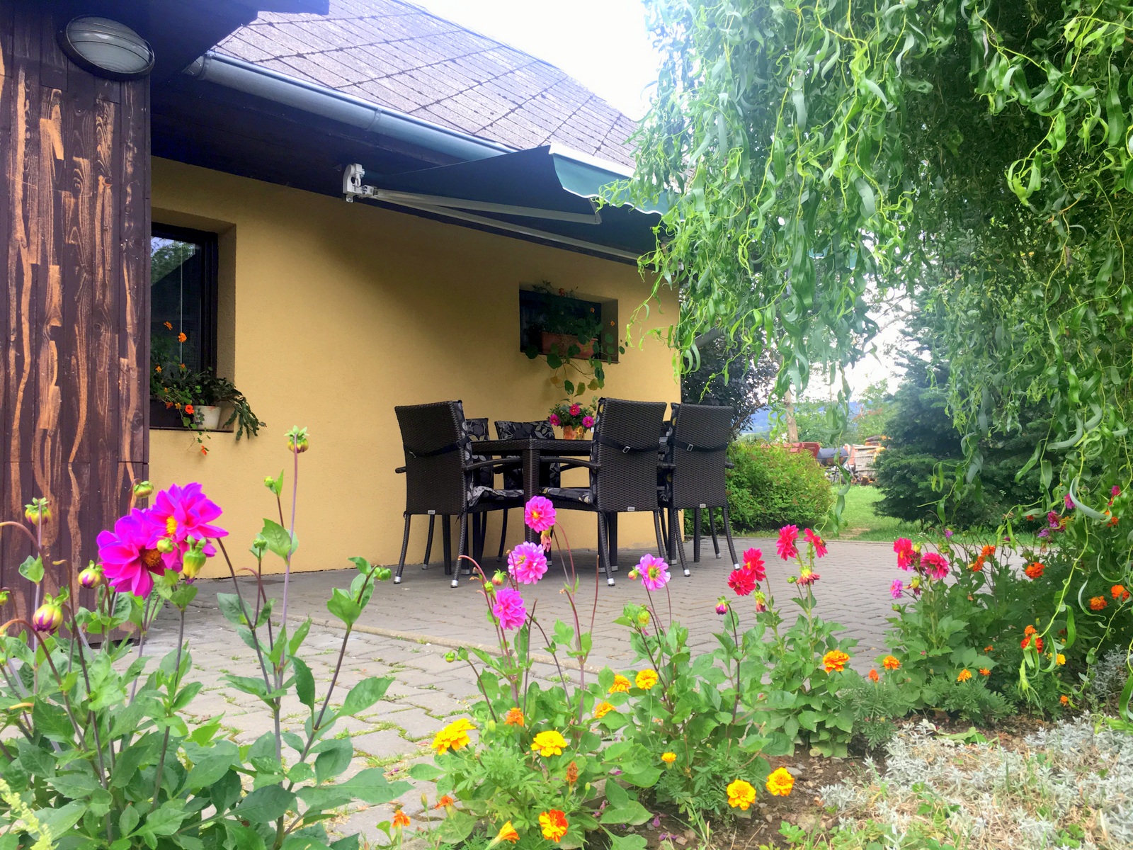 Hosté mohou využít také společenskou místnost s krbem, saunu, venkovní posezení s venkovním krbem, grill, ohniště.