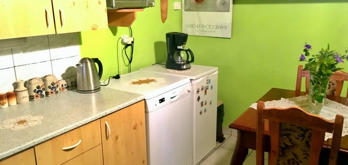 Celková kapacita penzionu pojme 6 osob. Hosté jsou ubytovaní ve 2 pokojích, které se nacházejí v podkroví. Samozřejmostí je také sociální zařízení se sprchou a WC. K dispozici je plně vybavená kuchyň (plynový sporák, trouba, kávovar, varná konvice, mikrovlnná trouba, lednice).