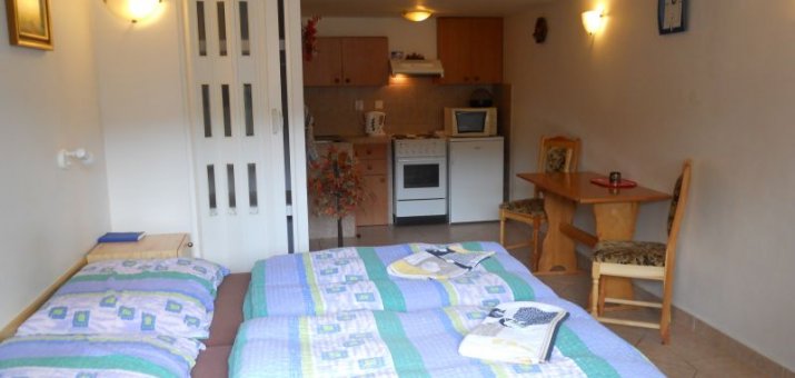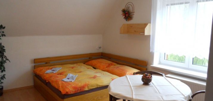 Apartmán 2+2 s vlastní kuchyňkou a jídelnou. Všechny pokoje jsou vybaveny TV a sociálním zařízením. V prvním patře se nachází 3 dvoulůžkové pokoje, pro které je k dispozici velká plně vybavená kuchyň. V přízemí jsou 2 pokoje s vlastním kuchyňkou a sociálním zařízením. V teplých měsících je k dispozici krásné posezení na zahradě včetně opékání, ohniště. Zabezpečené parkoviště pro naše hosty v ceně ubytování. WIFI k dispozici zdarma.