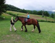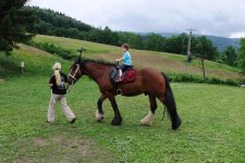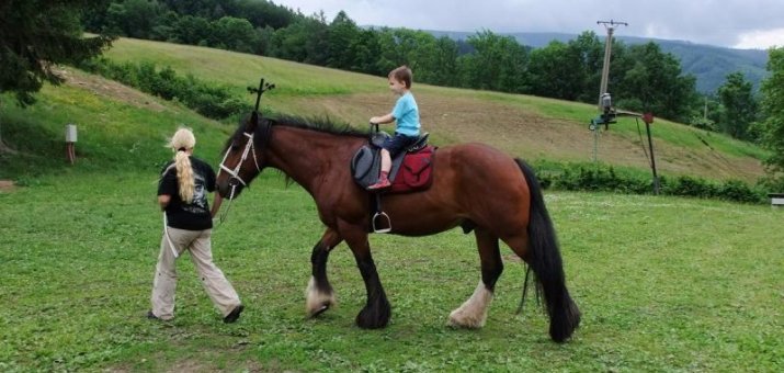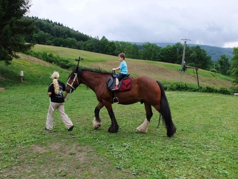 Letní aktivity: pro začátečníky i pokročilé, děti i dospělé, vyjížďky na koních, plemene irský cob, kteří jsou typičtí svojí klidnou povahou.