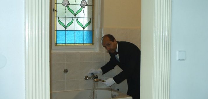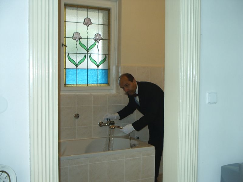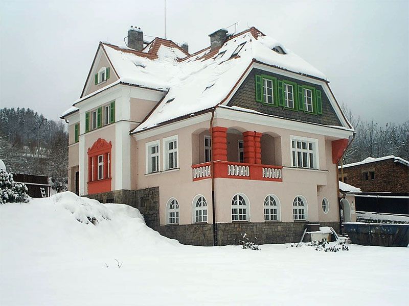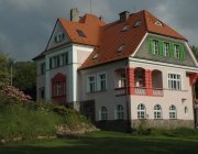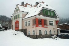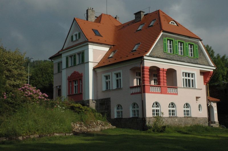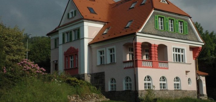 • Apartmán VIKTORIE 3+1 s původními parketami, štukovými stropy, dřevěným obložením, dobovým nábytkem, každý pokoj (27, 27, 25) je vybaven manželskou postelí, dvěma křesly se stolkem, toaletkou a skříní, kuchyně s jídelnou 25, hala 21, předsíň, lodžie, veranda, 2x WC, 2x koupelna (vana + sprcha), krytina podlah – parkety, koberce, dlažba. Přímý vstup na zahradu, samostatný vchod hlavním schodištěm.