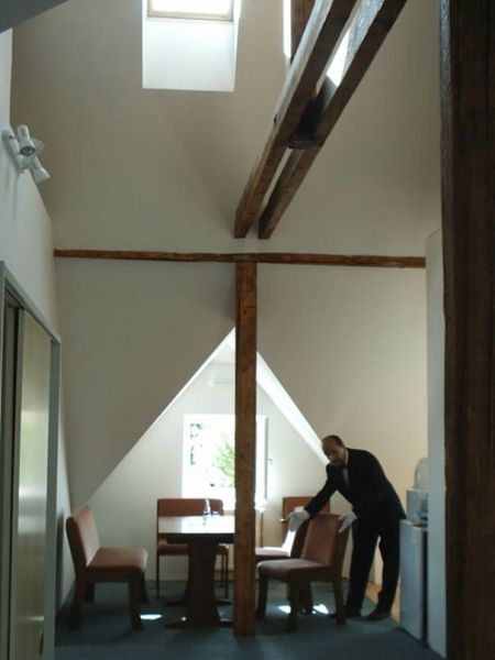 • Apartmán RADMILA 2+1 – pokoje se šikminami střechy a trámy střešní konstrukce (15,15), každý s dvěma lůžky, dvěma křesly a stolkem a skříní, kuchyně s jídelnou 24, koupelna, 2x WC, předsíň, krytina podlah – koberce a dlažba