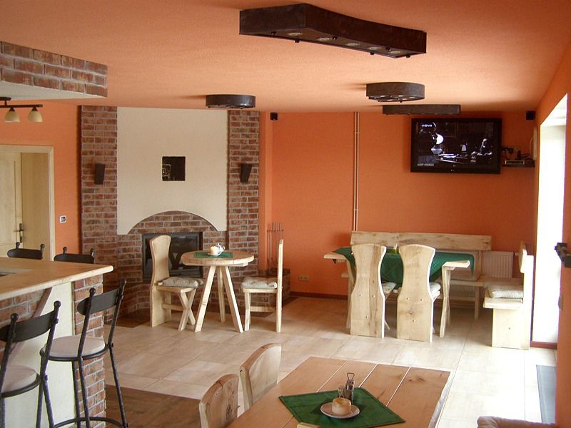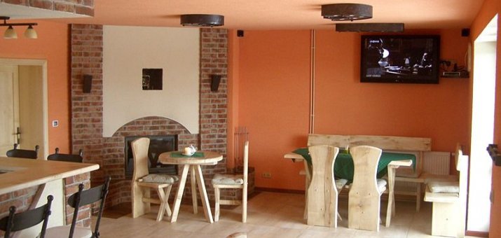 Tak jako celý penzion i restaurace je vybavená dvěma plazma TV, krbem, jukeboxem i karaoke.