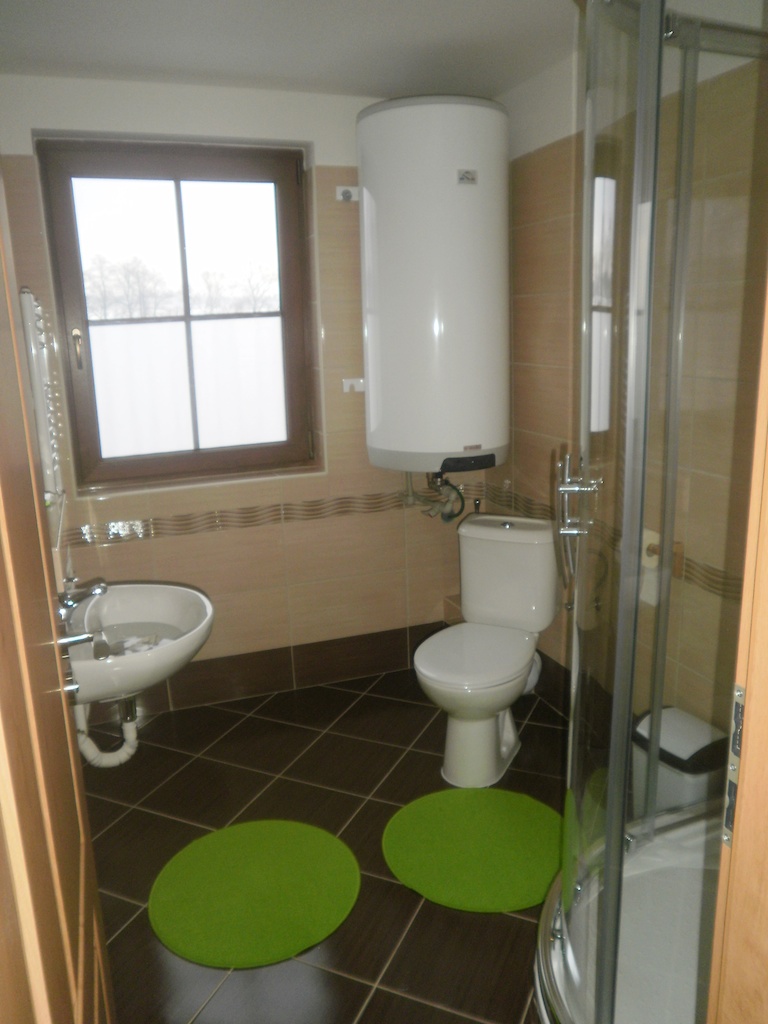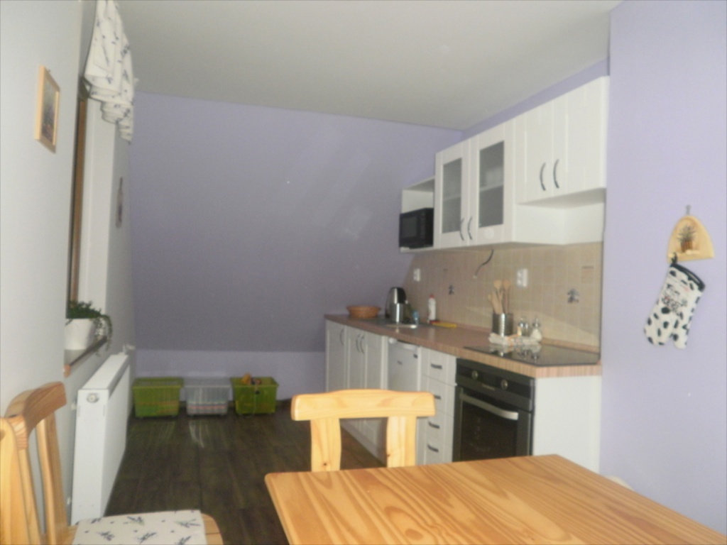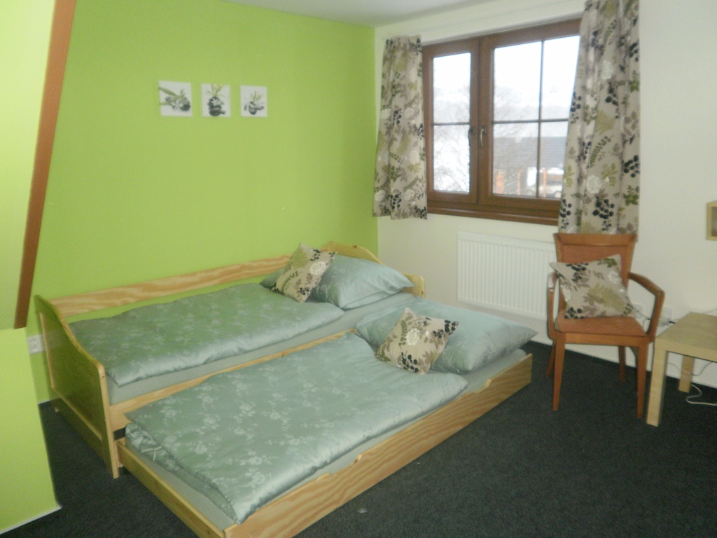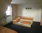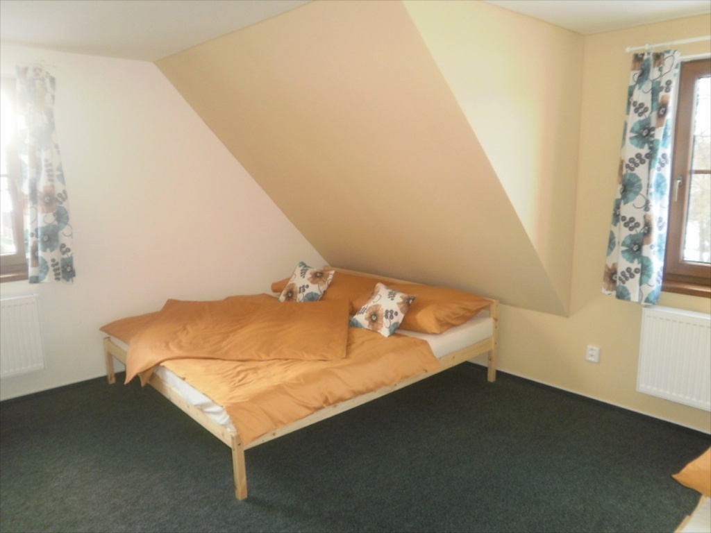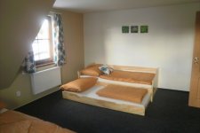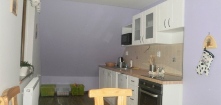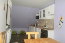K dispozci jsou 3- čtyřlůžkové pokoje, každý s vlastní kopelnou a WC, kompletně vybavená kuchyně se sporákem, troubou, mikrovlnou troubou a varnou konvicí.