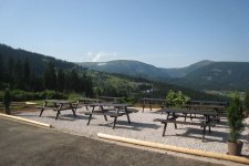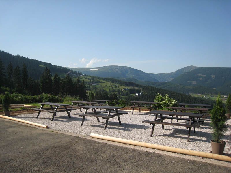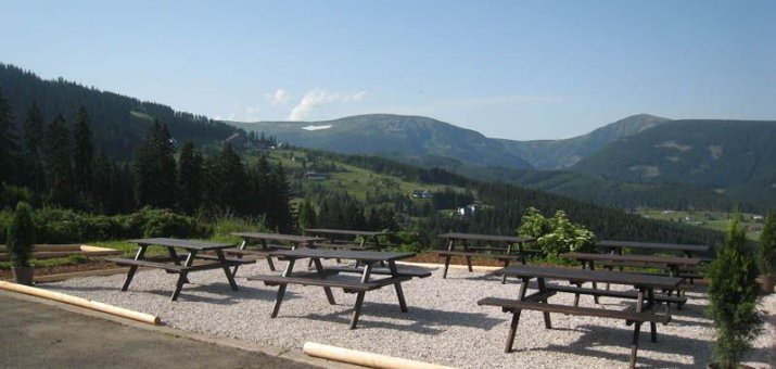 V zimní i letní sezóně je k dispozici horská restaurace s posezením včetně venkovní slunné terasy, odkud je krásný výhled na panorama Sněžky, Studniční hory a Obřího dolu.