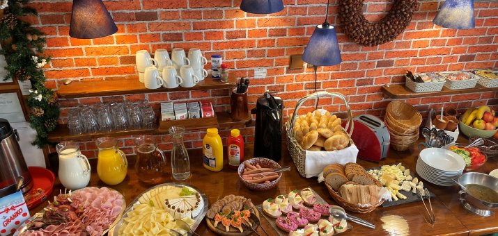 Najdete u nás chutnou domácí českou kuchyni s profesionální obsluhou. K dispozici je polopenze - snídaně formou bufetu a tříchodová večeře. Večer si můžete zajít na bar s nabídkou nejen dobrého piva ale i koktejlů, vína a drobného občerstvení. U dobrého pití si můžete zahrát nějakou stolní hru či karty, které vám rádi zapůjčíme.