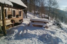 - K dispozici je příjemná jídelna s barem a venku terasa s výhledem na horské hřebeny i do údolí.