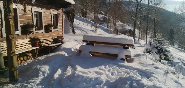 Nové pokoje s vlastním sociálním zařízením, zařízené tak, aby jste se i zde cítili jako doma. Pro své hosty chceme jen to nejlepší a proto nabízíme pestrý bar s příjemnou atmosférou podtrženou praskáním ohně v kachlových kamnech a pokud budete mít i po večeři chuť na něco dobrého, jistě i po této stránce nebudete strádat. Chalupa je nekuřácká. Hostům je k dispozici příjemná jídelna s barem a venku terasa s výhledem na horské hřebeny i do údolí.