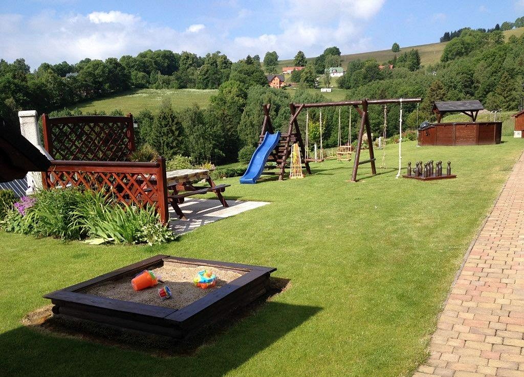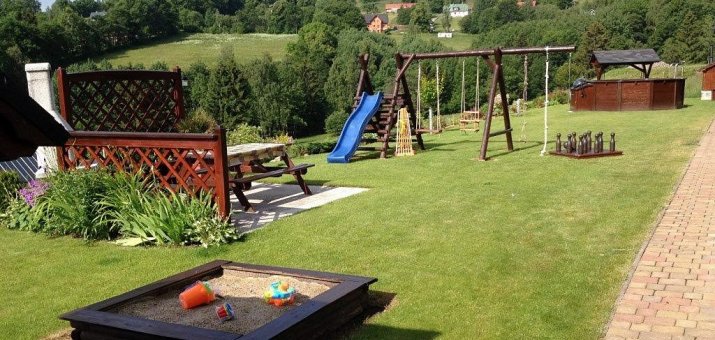 Pro rodiny s malými dětmi je možno využít dětského koutku, pískoviště, houpaček.