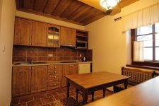 Apartmán se skládá z lyžárny, sociálního zařízení, kuchyňského koutu, obytného pokoje a oddělené ložnice. Sociální zařízení je vybaveno sprchovým koutem a odděleným WC. Na chodbě vás očekává Krakonoš.