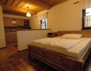 Ve vkusně zařízeném obývacím pokoji naleznete, TV-SAT, DVD přehrávač, připojení na internet a dvojlůžkovou postel.