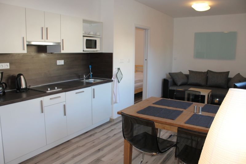 Součástí každého apartmánu je ložnice vybavena ložním prádlem a ručníky.