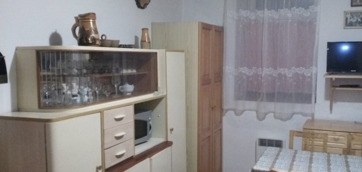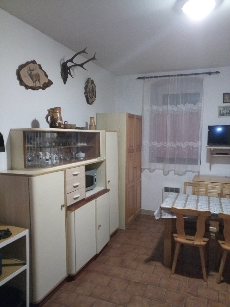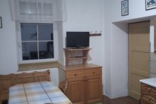 - Aartmán č. 1: V přízemí, 1 x kuchyň, 2 x pokoj, elektrický sporák, sporák na dřevo, koupelna, WC, TV
