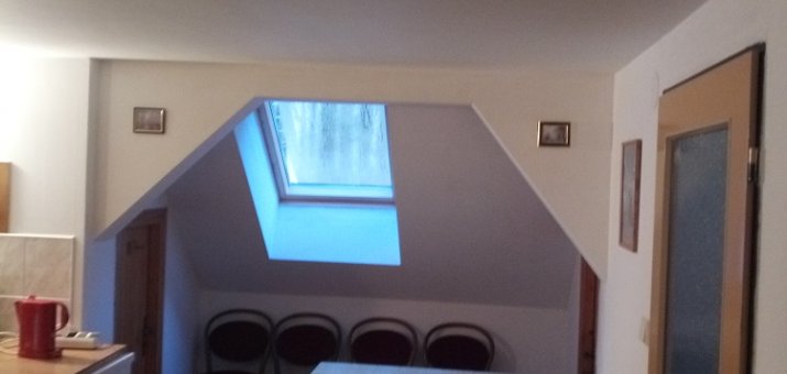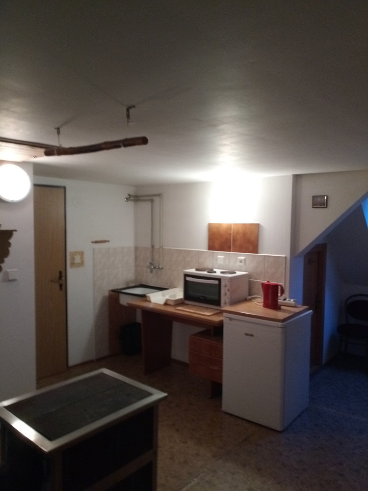 - Aartmán č. 3: V podkroví, 1 x kuchyň, 3 x pokoj, elektrický sporák, kamna na dřevo, koupelna, WC, mikrovlnka, TV