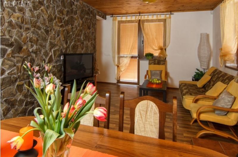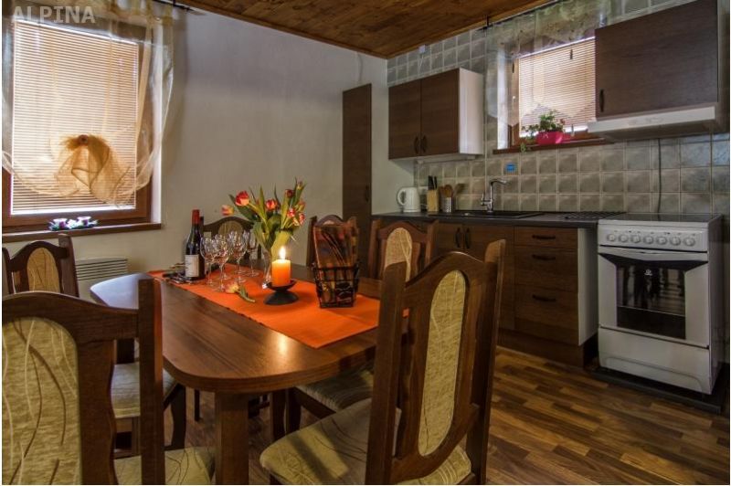 Moderní chata Alpina se skládá ze dvou apartmánů se samostatnými vchody, každý s kapacitou pro maximálně 10 osob. Apartmány jsou zcela stavebně oddělené čili hosté se navzájem neruší. Každý apartmán má společenskou místnost s kompletně vybavenou kuchyní, krbem, TV LCD 42 \ "a satelitem dále 2xWC, 2xsprcha, sauna, 1x 2-lůžkový a 2x 4-lůžkový pokoj. WiFi připojení zdarma