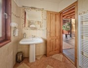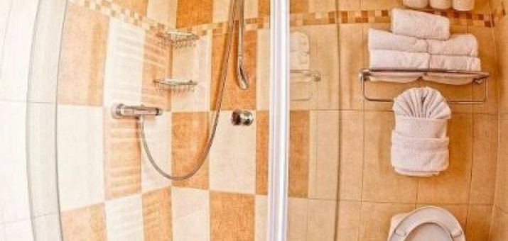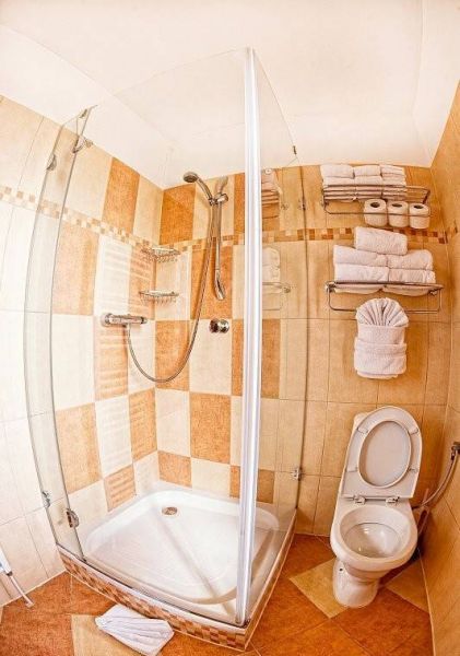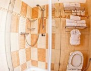 Koupelna je vybavena - sprchový kout, WC, umyvadlo .