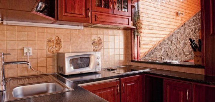 - Přízemí: zádveří, plně vybavená kuchyň (varná konvice, myčka nádobí, sklokeramická deska, lednice, mikrovlnná trouba, komplet vybavení nádobí.), jídelna, obývací, koupelna, lyžárna-sklad